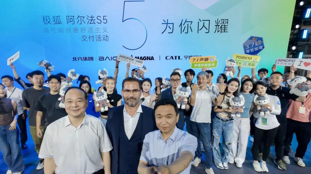 除北汽集團(tuán)之外,核心零部件合作伙伴寧德時代董事長兼CEO曾毓群、整車智造合作伙伴麥格納斯太爾整車事業(yè)部全球總裁羅蘭·普雷特納,兩位世界級巨頭也同時現(xiàn)身活動現(xiàn)場,在業(yè)界首次“合體”為阿爾法S5首批用戶交車。