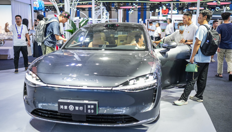 8月28日,觀展者在2024中國國際大數(shù)據(jù)產(chǎn)業(yè)博覽會會場參觀智能駕駛汽車。新華社記者 陶亮 攝