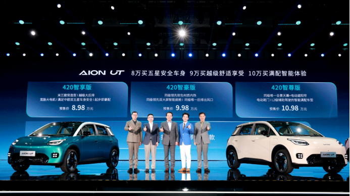央廣網(wǎng)北京1月15日消息(記者 姜鵬)1月6日,埃安UT鸚鵡龍正式開啟預(yù)售,新車共推出420智享版、420智豪版、420智尊版3個版本,預(yù)售價8.98萬元-10.98萬元。