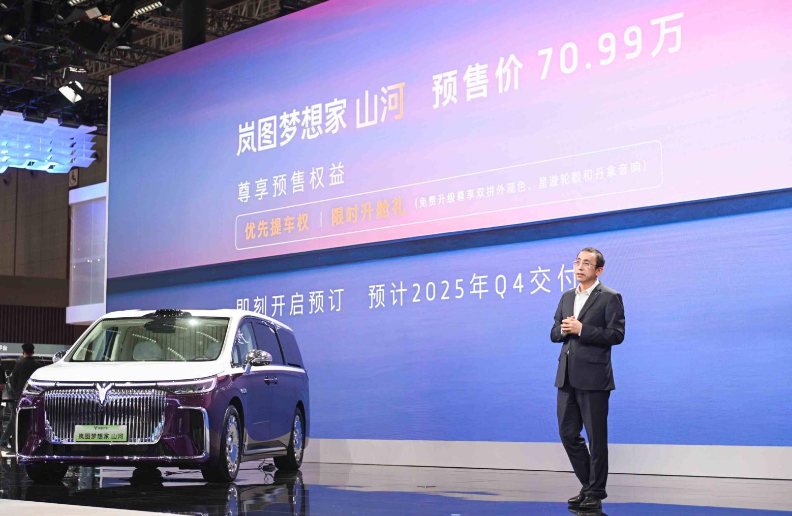 嵐圖汽車CEO盧放表示:“4月,嵐圖再迎高質(zhì)量發(fā)展里程碑,產(chǎn)銷跨越20萬大關(guān),發(fā)布全球首個(gè)天元智能架構(gòu)。嵐圖FREE+正式發(fā)布,為用戶而改,為用戶而來,一經(jīng)亮相便引發(fā)廣泛關(guān)注。6月,嵐圖FREE+即將開啟預(yù)售,我們有信心,讓?shí)箞D的第一款產(chǎn)品,成長為大五座新能源SUV市場第一流的產(chǎn)品!” 嵐圖FREE+閃耀上海車展 6月正式開啟預(yù)售 4月24日,嵐圖汽車以“自由智上 夢想臻境”為主題,攜全系車型亮相上海國際車展。首搭華為乾崑輔助駕駛HUAWEI ADS 4和鴻蒙座艙HarmonySpace 5的嵐圖FREE+重磅亮相。 作為嵐圖汽車的開山之作,嵐圖FREE歷經(jīng)四年打磨、在收獲近10萬用戶信賴之后,以超5億元投入實(shí)現(xiàn)1366項(xiàng)產(chǎn)品升級(jí),其中82項(xiàng)同級(jí)第一,并配備用戶期待的冰箱彩電大沙發(fā)。嵐圖FREE+定位于“極智駕享大五座SUV”,將以全維進(jìn)化之勢,重塑30萬級(jí)新能源SUV市場格局,沖擊30萬級(jí)大五座SUV TOP3。6月,嵐圖FREE+即將開啟預(yù)售。 夢想家山河同步亮相 “嵐圖服務(wù)VOYAH SERVICE”正式發(fā)布 上海車展上,集極致安全、智能和舒適于一身的四座旗艦MPV——嵐圖夢想家山河同步登場,并正式開啟預(yù)訂。嵐圖夢想家山河基于嵐圖汽車高定平臺(tái)打造,是業(yè)內(nèi)最智能、最安全的高端四座MPV,以全域智能、極致安全和全維舒適重新定義四座豪華MPV出行標(biāo)準(zhǔn)。