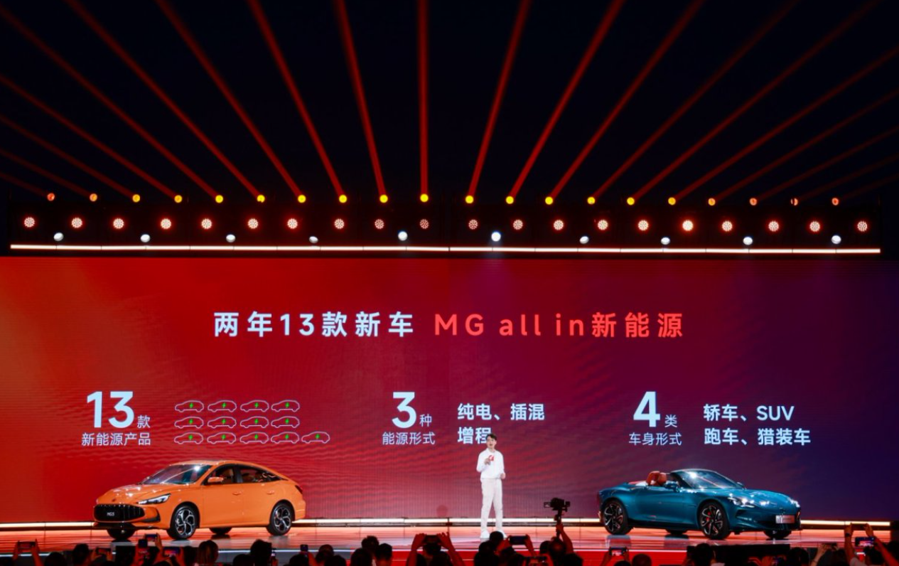 央廣網(wǎng)北京7月1日消息(記者姜鵬)2025年6月30日,上汽集團旗下MG品牌舉行了MG Holiday夏日敞開玩暨夏季新車發(fā)布會,現(xiàn)場宣布投資超100億元,加速推進All in新能源戰(zhàn)略。按照規(guī)劃未來2年,MG將迎來產(chǎn)品密集投放期,陸續(xù)推出13款新能源產(chǎn)品,覆蓋純電、插混、增程3種新能源形式,涵蓋轎車、SUV、跑車及獵裝車4大車身形式。