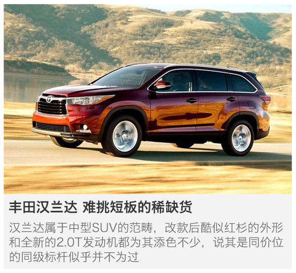 隨著進(jìn)口大眾"Tiguan"上市和國產(chǎn)大眾途觀L的價格公布,讓眾多圍觀群眾為之咋舌,目前全新進(jìn)口Tiguan和國產(chǎn)大眾途觀L可謂是目前最火爆的車型,前者上市價格26-39萬,后者前期上市的1.8T與2.0T車型的起步價格近28萬,頂配達(dá)到36萬;遠(yuǎn)高于目前眾多同級別SUV,且按照之前的套路,加價也是可能的事情......因此,就不如去看看那些同級別對手們,至少要先等新車的熱乎氣兒澇澇再說。