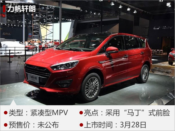 在2016年11月舉行的廣州國(guó)際車展上,力帆汽車對(duì)外發(fā)布了全新MPV—軒朗,其“馬丁”式前臉設(shè)計(jì)令人印象深刻,同時(shí)運(yùn)動(dòng)化輪圈與下沉式車頂?shù)拇钆湟彩窍嗟靡嬲?。?nèi)飾方面,力帆軒朗以黑色為主,中控臺(tái)下方按鍵布局較為簡(jiǎn)潔,實(shí)用性較高。力帆軒朗搭載了1.5L渦輪增壓和2.0L自然吸氣兩款發(fā)動(dòng)機(jī),前者匹配的是8速自動(dòng)變速箱或5速手動(dòng)變速箱,后者則匹配的是5MT或CVT變速箱。新車將于3月28日正式上市。