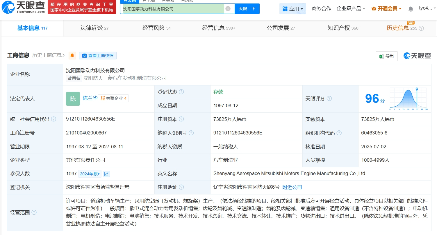 天眼查顯示,航天三菱已于今年7月2日更名為“沈陽國擎動力科技有限公司”,同時三菱商事株式會社、三菱自動車工業(yè)株式會社、馬中投資控股有限公司均退出投資人之列,股東變更后的名單中出現(xiàn)北京賽苜科技有限公司。
