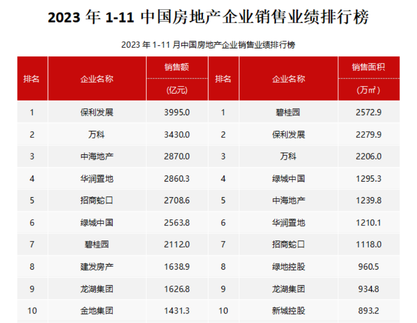 從企業(yè)表現(xiàn)來看,央國(guó)企銷售表現(xiàn)仍較為強(qiáng)勁。2023年1-11月,銷售額同比增長(zhǎng)超過10%的大型企業(yè)為,中海、華潤(rùn)、建發(fā)、越秀、華發(fā)、聯(lián)發(fā)、國(guó)貿(mào)地產(chǎn)、中建壹品、中建東孚、象嶼地產(chǎn)等,這些企業(yè)銷售增長(zhǎng)較為強(qiáng)勁。