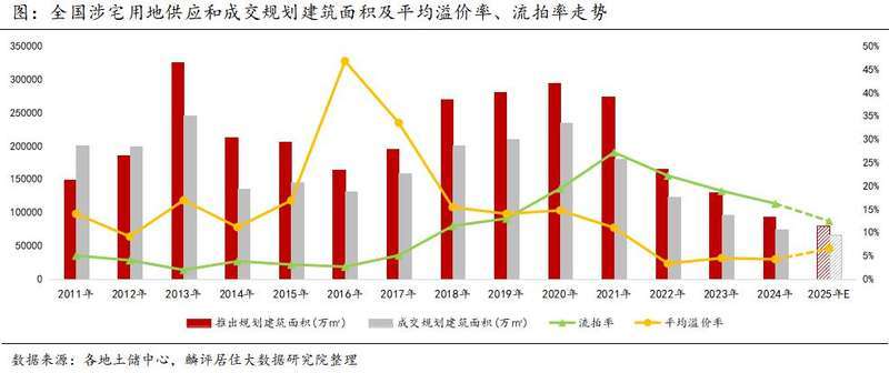 剛剛過去的2024年,全國土地市場供需兩端延續(xù)縮量態(tài)勢,溢價率低位徘徊,流拍率雖有下降但仍處于較高位。據(jù)機構統(tǒng)計,2024年全國住宅用地成交規(guī)模降幅超兩成,土地出讓金僅為2020年高點四成左右。聚焦高能級城市拿地投資,成為眾多房地產(chǎn)企業(yè)的共識。