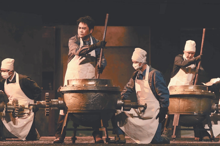 與歌劇跌宕的劇情相匹配,作曲家唐建平也創(chuàng)作了極具戲劇張力的音樂。全劇既有不少充滿挑戰(zhàn)的高音唱段,也有充滿“氛圍感”的旋律。221沒有合適的炸藥合成設(shè)備,工作人員就用人工土法攪拌,小危險不時發(fā)生,這時的音樂充滿懸疑感,緊扣心弦。唐建平還在劇中融入了當?shù)匾魳吩?,上半場音樂由藏族民歌引入,下半場則由青海花兒開啟,而在劇中的聯(lián)歡會上,藏族風格的音樂元素不時響起,也為梁振道與女友的意外相遇鋪墊了情緒。