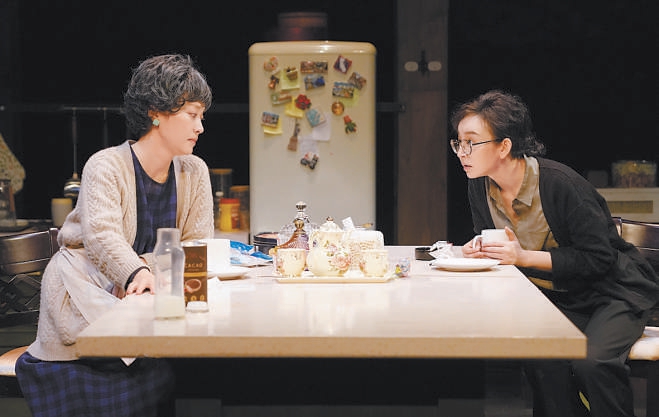 “《晚安,媽媽》沒(méi)有大的戲劇沖突,所有的矛盾都來(lái)自真實(shí)的生活,通過(guò)合情合理的人物關(guān)系和環(huán)環(huán)相扣的對(duì)話,去撥開(kāi)日常生活之下翻滾的心。”唐燁形容,這是一部沒(méi)有借助所謂的“手段”的作品,100分鐘的演出真誠(chéng)動(dòng)人,靠的是扎實(shí)的舞臺(tái)實(shí)景和兩位演員牽動(dòng)肺腑的表演——冰箱里塞滿食物,杯子盛著冒白氣的熱巧克力,水龍頭能擰出自來(lái)水,沒(méi)有刻意的音樂(lè)和效果,整座舞臺(tái)如同真實(shí)生活的切面。演員需要在“做家務(wù)”的同時(shí)進(jìn)行快節(jié)奏、高密度的對(duì)話,“手上不能停,但也不能攪戲,比如母女倆換沙發(fā)套的那一段,我們就練了很久很久?!碧茻钫f(shuō)。