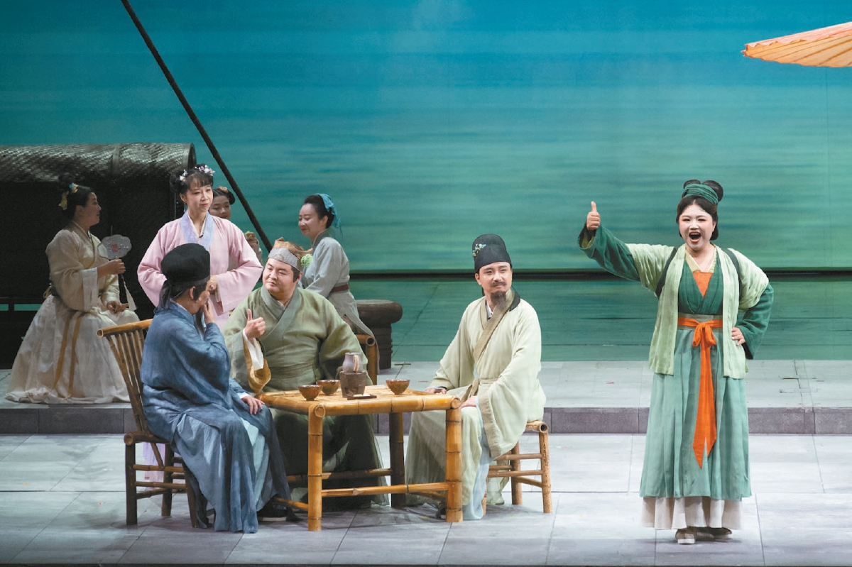編劇曹路生借用清代李漁“立主腦、減頭緒、密針線”的創(chuàng)作理念大刀闊斧重構(gòu)敘事,刪減十余個(gè)支線人物,將敘事重心聚焦于趙盼兒、宋引章、孫三娘三位女性從錢塘到汴京的創(chuàng)業(yè)歷程。既延續(xù)關(guān)漢卿元雜劇《趙盼兒風(fēng)月救風(fēng)塵》的精神內(nèi)核,又汲取電視劇對(duì)女性情誼的現(xiàn)代詮釋,通過(guò)歌劇獨(dú)有的抒情性與戲劇張力,展現(xiàn)了中國(guó)女性“自尊、自愛(ài)、自立、自強(qiáng)”的精神內(nèi)核。導(dǎo)演蔣維國(guó)以“宋式美學(xué)的歌劇化重構(gòu)”為核心,巧妙調(diào)度舞臺(tái),演員舉手投足間皆融入宋畫(huà)的“日常優(yōu)雅”,將影視IP的動(dòng)人故事升華為具有普適價(jià)值的歌劇藝術(shù)表達(dá)。