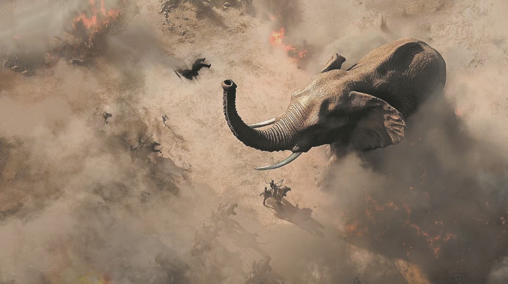 百米青銅巨門徐徐開啟,祭祀臺上女子隨樂獨舞,突然黃沙漫天,戰(zhàn)象狂奔而來,未等塵埃落定,視線閃回“博物館”,金戈鐵馬化作一尊尊精美文物浮現(xiàn)眼前……