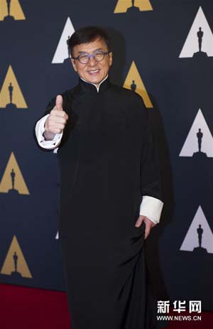11月12日,成龍出席在洛杉磯好萊塢舉行的第8屆美國電影藝術(shù)與科學(xué)學(xué)院(簡稱影藝學(xué)院)理事會獎頒獎典禮。影藝學(xué)院理事會12日授予中國影星成龍和其他三位英美電影人奧斯卡終身成就獎,以表彰他們?yōu)殡娪八囆g(shù)作出的杰出貢獻(xiàn)。成龍也是首位獲此殊榮的華人。新華社記者楊磊攝