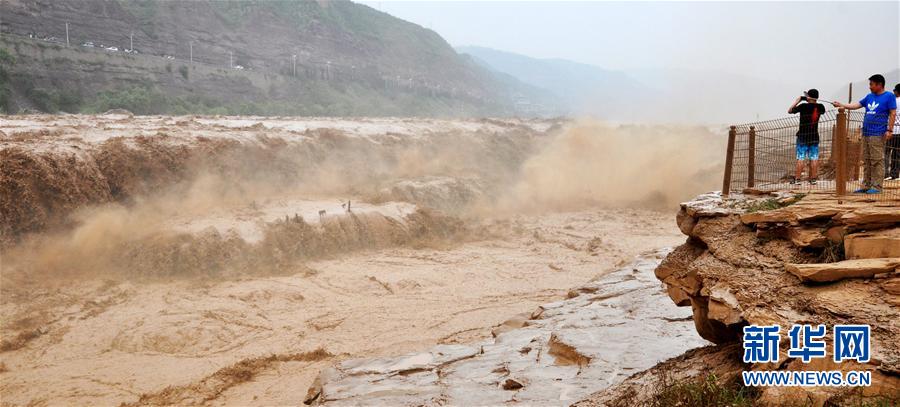 近日,受上游地區(qū)強降雨天氣影響,位于山西吉縣和陜西宜川縣交界的黃河壺口瀑布水量大漲。目前,壺口景區(qū)已啟動應(yīng)急預警,工作人員加強上游水情監(jiān)測并加大安全巡查力度,確保游客安全。新華社發(fā)(呂桂明 攝)