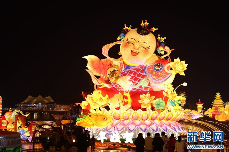 圖為1月13日拍攝的《年娃賀歲》燈組。新華網發(fā)(曹鵬 攝)