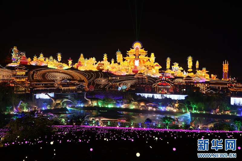 圖為1月13日拍攝的《智慧恐龍》燈組。新華網發(fā)(曹鵬 攝)