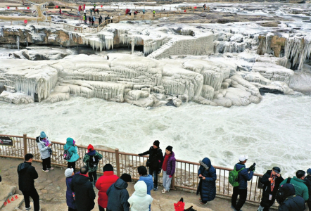 7.壺口瀑布冰掛吸引了眾多游客。