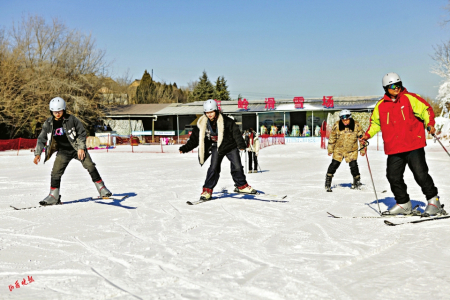 5.襄汾縣東嶺滑雪場,滑雪愛好者體驗冰雪樂趣。