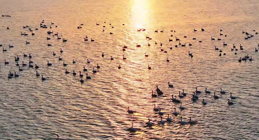 ?初春時(shí)分,在夕陽(yáng)余暉映照下,安徽省潁上縣秋家湖濕地被染上一層夢(mèng)幻般的色彩。放眼望去,成群飛鳥(niǎo)與漫天霞光融為一體,繪就出一幅壯美而靈動(dòng)的生態(tài)畫(huà)卷。(徐紅梅)