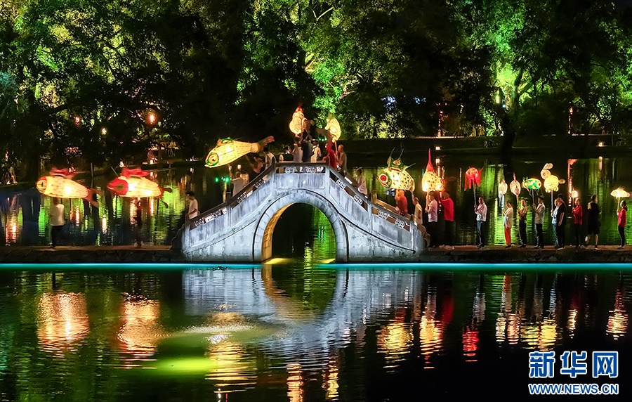 8月13日晚,安徽省黃山市黟縣宏村流光溢彩,花燈夜游表演吸引眾多游客前來參觀、游玩。