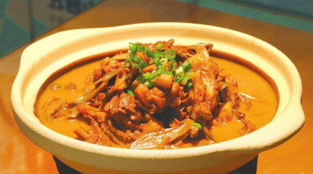 制作過程處處是講究,先泡發(fā)臺蘑、處理雞塊,用十幾種調料煸炒雞塊,再與泡發(fā)好的臺蘑小火慢燉40分鐘,讓山珍的鮮味與雞肉的醇香充分融合,最后大火收汁。這道菜將臺蘑鮮香與雞肉醇厚完美平衡,湯汁濃郁不膩。