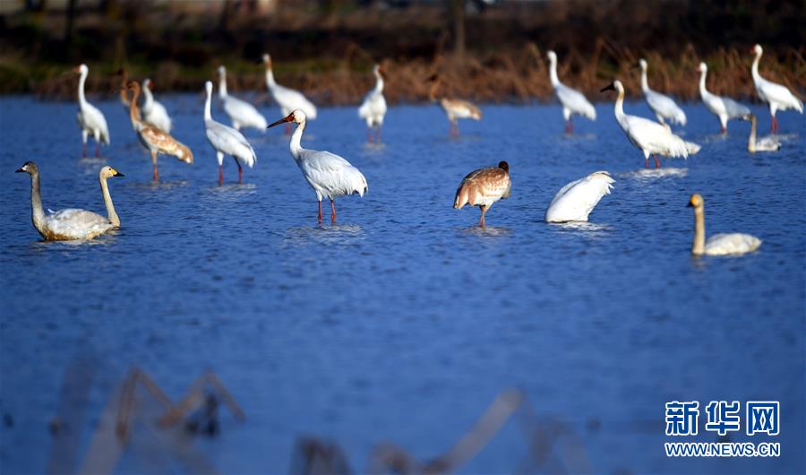 受新一輪北方冷空氣南下影響,江西鄱陽湖越冬候鳥數(shù)量激增,一年中最佳的觀鳥時節(jié)到來。江西鄱陽湖國家級自然保護區(qū)管理局近日監(jiān)測顯示,飛抵保護區(qū)的候鳥總數(shù)達到16萬只,主要包括大雁、小天鵝、白鶴、東方白鸛等。