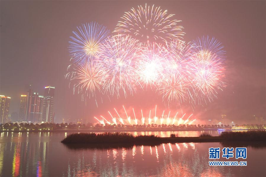 2017年1月1日夜晚,長(zhǎng)沙橘子洲附近湘江上空綻放絢麗焰火。當(dāng)晚,湖南長(zhǎng)沙橘子洲舉行焰火晚會(huì)慶祝新年到來(lái)。整場(chǎng)焰火晚會(huì)主題為“多彩星城、魅力長(zhǎng)沙”,焰火燃放時(shí)間約20分鐘。 新華社記者 龍弘濤攝