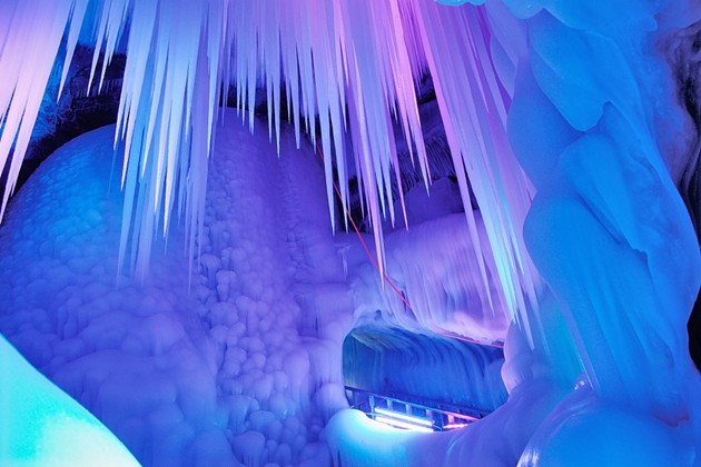 專家們稱,該冰洞位列全國(guó)一萬(wàn)多個(gè)洞穴中僅有的九個(gè)冰洞之首。洞內(nèi)制冷機(jī)制最強(qiáng)、冰儲(chǔ)量最多,現(xiàn)開(kāi)發(fā)近百米。分成上下五層,看冰洞須穿棉衣、戴手套,小心翼翼地游覽。通過(guò)鉆冰洞,下冰樓梯,過(guò)冰棧,可到各層觀光。每層可容納數(shù)十人。洞內(nèi)四周全是冰。由冰形成的冰柱、冰簾、冰瀑、冰花、冰佛、冰床、冰鐘、冰人、冰菩薩等,千奇百怪、不一而足。洞內(nèi)大大小小的景致或玲瓏剔透,或晶瑩奪目,或婀娜多姿,或雄偉壯麗,無(wú)不令人驚嘆,堪稱一個(gè)冰的絕妙世界。