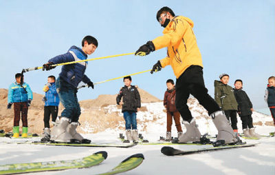 圖為在甘肅省山丹縣佛山滑雪場(chǎng),近百名中小學(xué)生正在滑雪教練的指導(dǎo)下體驗(yàn)冰雪運(yùn)動(dòng)樂趣。張 淵 攝(人民視覺)