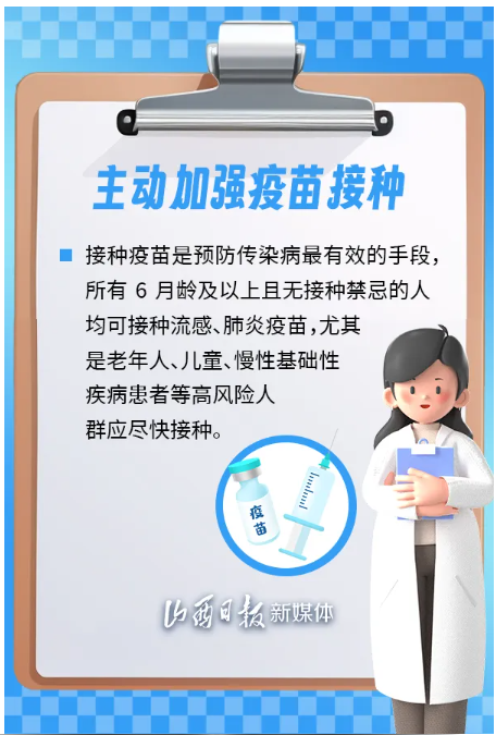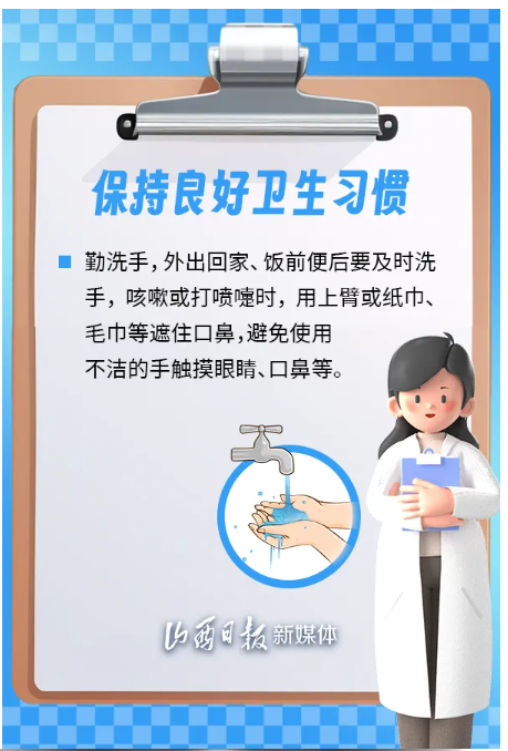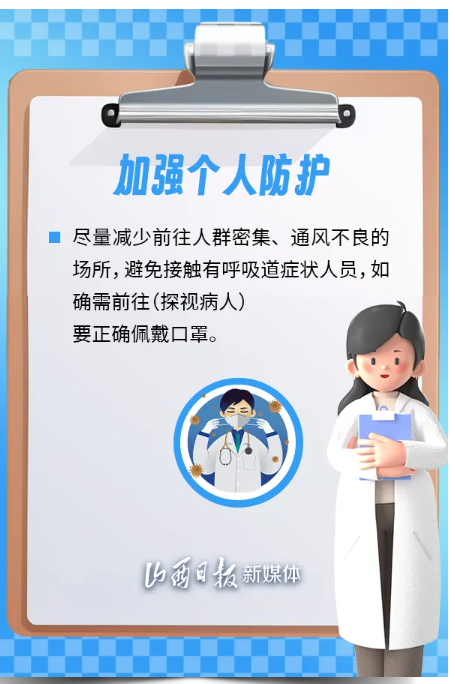 為保護公眾身體健康,有效應對傳染病疫情,山西省衛(wèi)健委、省疾控局溫馨提示,建議公眾加強個人防護,科學佩戴口罩,保持良好衛(wèi)生習慣,健康安全度過這個冬季。
