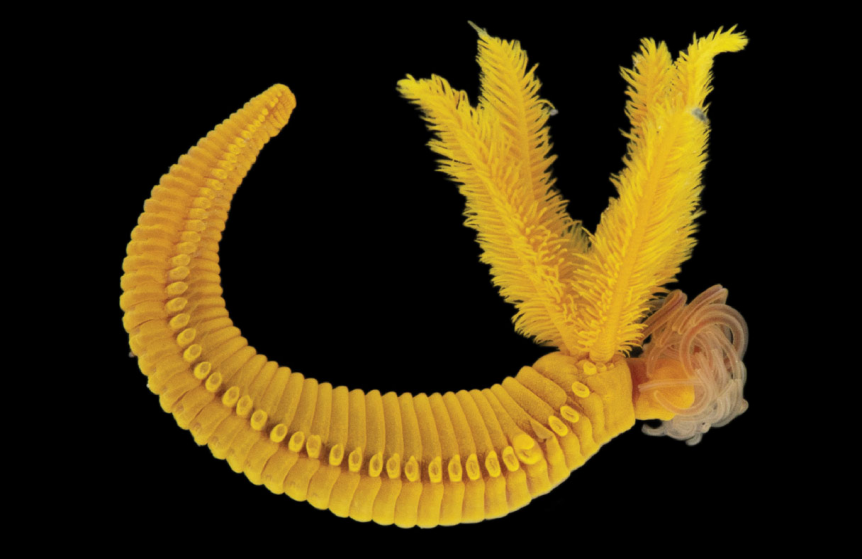 那么,為什么這種蠕蟲卻沒有被毒死?這得從它那身明亮的黃色說起。在深海的永恒黑暗中,大多數生物都是灰白色或深紅色,蠕蟲這身黃色便十分顯眼。