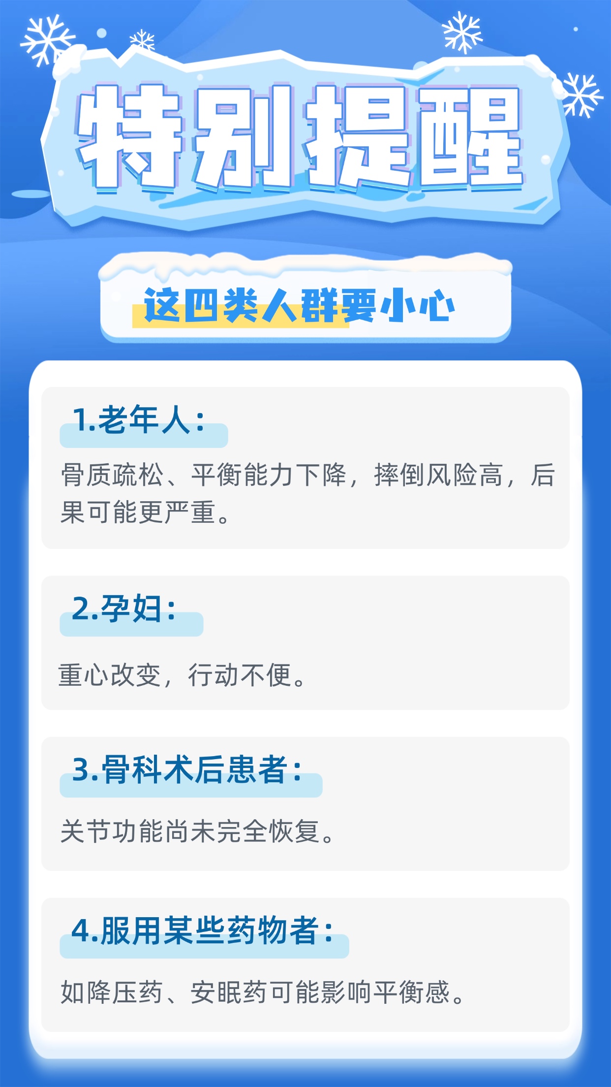 近日寒潮來(lái)襲,雨雪低溫導(dǎo)致路面濕滑,極易引發(fā)摔跤。每年冬雪季,因路滑摔倒導(dǎo)致骨折、扭傷的患者都會(huì)明顯增多。人民網(wǎng)《健康“醫(yī)”點(diǎn)通》欄目采訪(fǎng)了河南省職工醫(yī)院中醫(yī)科·中西醫(yī)結(jié)合科主任醫(yī)師張恒,總結(jié)了一份“雪天防摔秘籍”,助您安穩(wěn)過(guò)冬!