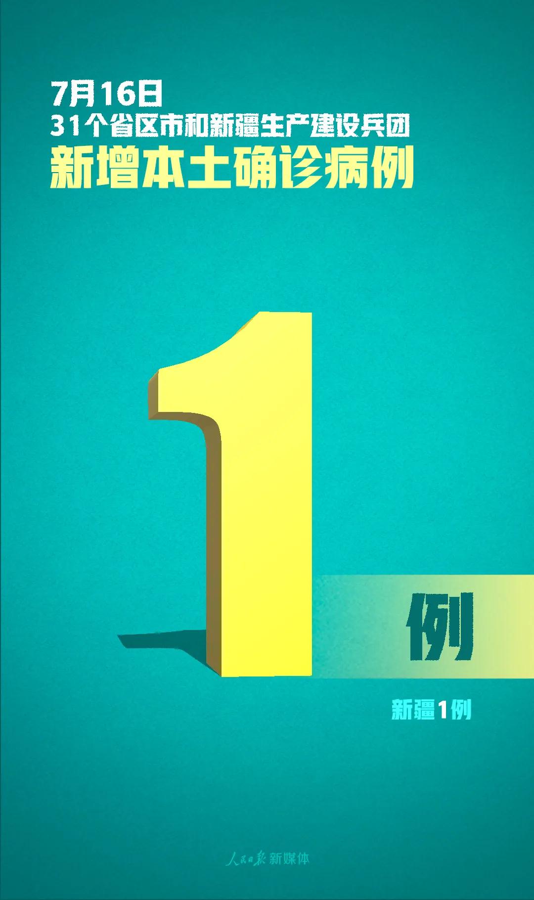 7月16日0—24時(shí),31個(gè)省(自治區(qū)、直轄市)和新疆生產(chǎn)建設(shè)兵團(tuán)報(bào)告新增確診病例10例,其中境外輸入病例9例(廣東4例,上海1例,江蘇1例,山東1例,廣西1例,陜西1例),本土病例1例(在新疆);無新增死亡病例;新增疑似病例1例,為境外輸入病例(在上海)。