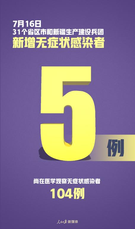 31個(gè)省(自治區(qū)、直轄市)和新疆生產(chǎn)建設(shè)兵團(tuán)報(bào)告新增無癥狀感染者5例(境外輸入2例);當(dāng)日無轉(zhuǎn)為確診病例;當(dāng)日解除醫(yī)學(xué)觀察5例(境外輸入4例);尚在醫(yī)學(xué)觀察無癥狀感染者104例(境外輸入79例)。