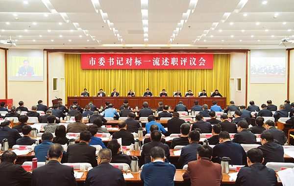 圖為市委書記對標(biāo)一流述職評議會會場。 本報(bào)記者 李聯(lián)軍攝
