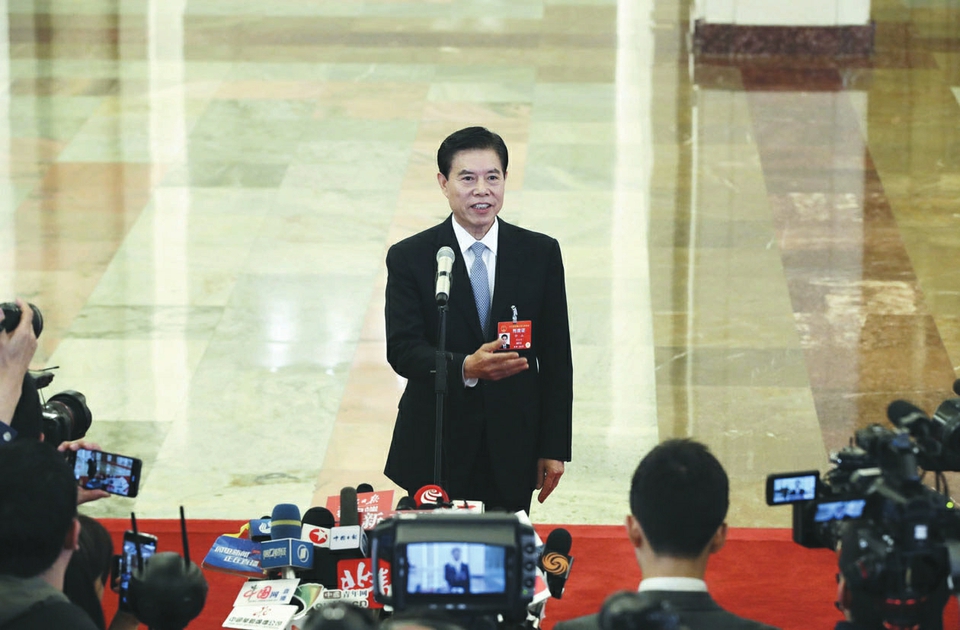3月5日上午,十三屆全國(guó)人大二次會(huì)議開(kāi)幕會(huì)結(jié)束后,第二場(chǎng)“部長(zhǎng)通道”舉行。銀保監(jiān)會(huì)主席郭樹(shù)清、商務(wù)部部長(zhǎng)鐘山、交通運(yùn)輸部部長(zhǎng)李小鵬、工信部部長(zhǎng)苗圩、海關(guān)總署署長(zhǎng)倪岳峰、國(guó)家市場(chǎng)監(jiān)管總局局長(zhǎng)張茅、農(nóng)業(yè)農(nóng)村部部長(zhǎng)韓長(zhǎng)賦、國(guó)臺(tái)辦主任劉結(jié)一先后亮相,回應(yīng)熱點(diǎn)問(wèn)題。