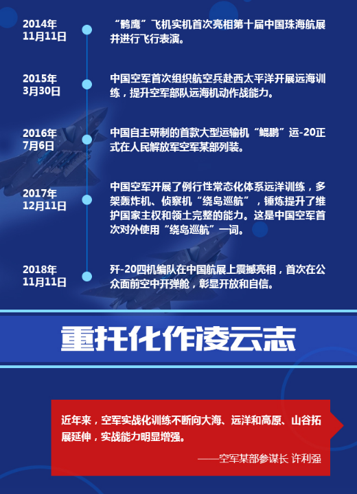今年是新中國(guó)成立70周年,也是中國(guó)空軍建軍70周年。中國(guó)空軍以習(xí)近平強(qiáng)軍思想為指引,緊緊圍繞黨在新時(shí)代的強(qiáng)軍目標(biāo),部署和推進(jìn)了一系列戰(zhàn)略布局和戰(zhàn)略舉措。
