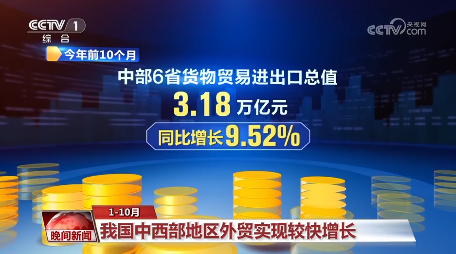 1—10月我國中西部地區(qū)外貿實現(xiàn)較快增長