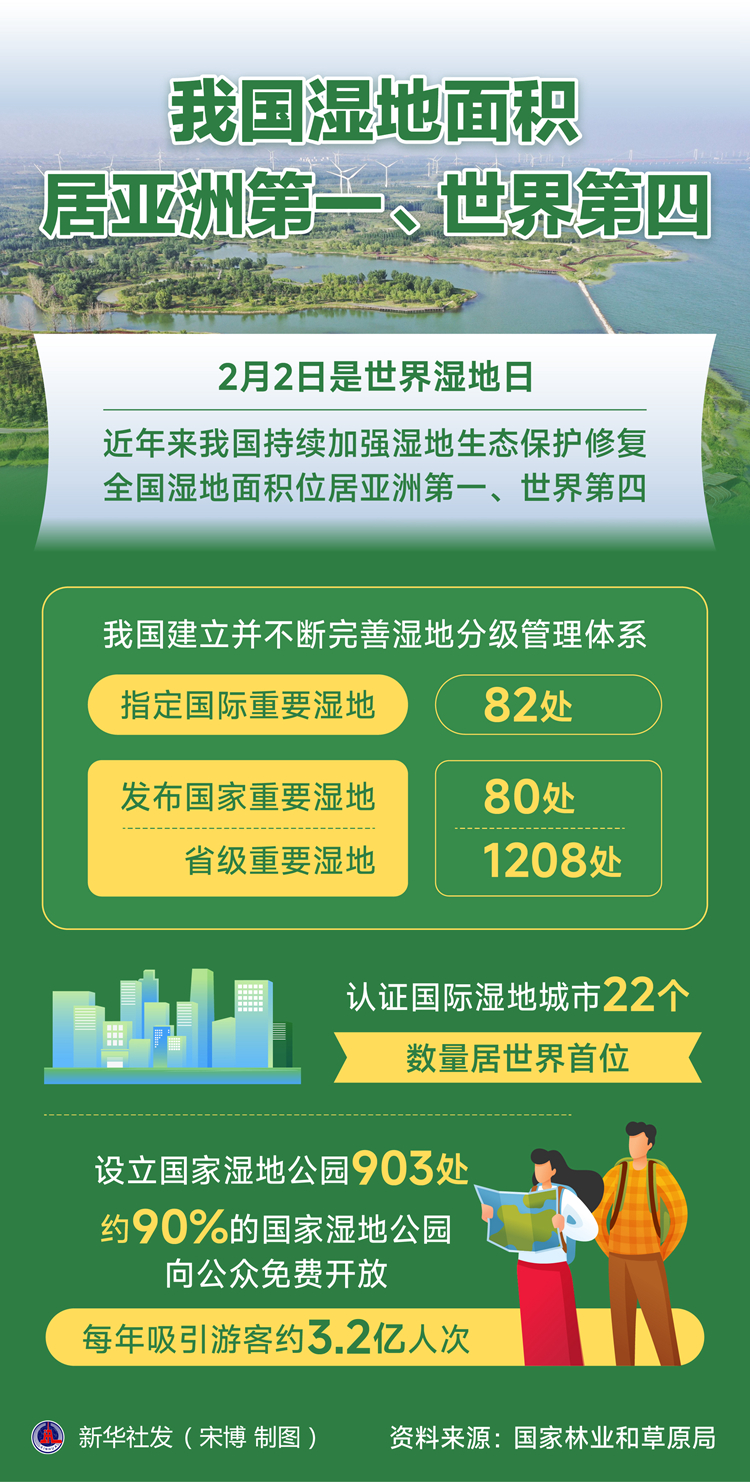 新華社北京2月2日電(記者黃垚)2月2日是世界濕地日。記者當(dāng)天從國(guó)家林業(yè)和草原局獲悉,近年來(lái)我國(guó)持續(xù)加強(qiáng)濕地生態(tài)保護(hù)修復(fù),全國(guó)濕地面積位居亞洲第一、世界第四,濕地保護(hù)形成重點(diǎn)治理和分類保護(hù)相結(jié)合的新格局。