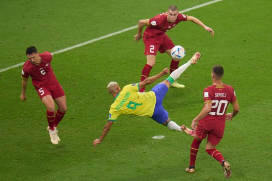 在首輪最后一場(chǎng)較量中,G組的巴西隊(duì)與塞爾維亞隊(duì)在上半場(chǎng)沒(méi)能進(jìn)球。易邊再戰(zhàn),巴西隊(duì)的理查利森接管了比賽,他先是在第62分鐘補(bǔ)射入網(wǎng),又在第73分鐘憑借個(gè)人能力完成一記精彩的轉(zhuǎn)身倒鉤破門(mén),為球隊(duì)鎖定勝局。
