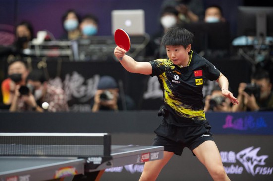 孫穎莎在比賽中回球。新華社記者 陳鐘昊 攝