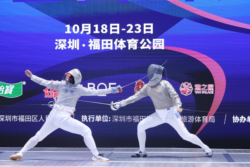 湯恩蘭(左)在女子佩劍個人決賽中對陣邵雅琦。圖片來自中國擊劍協(xié)會
