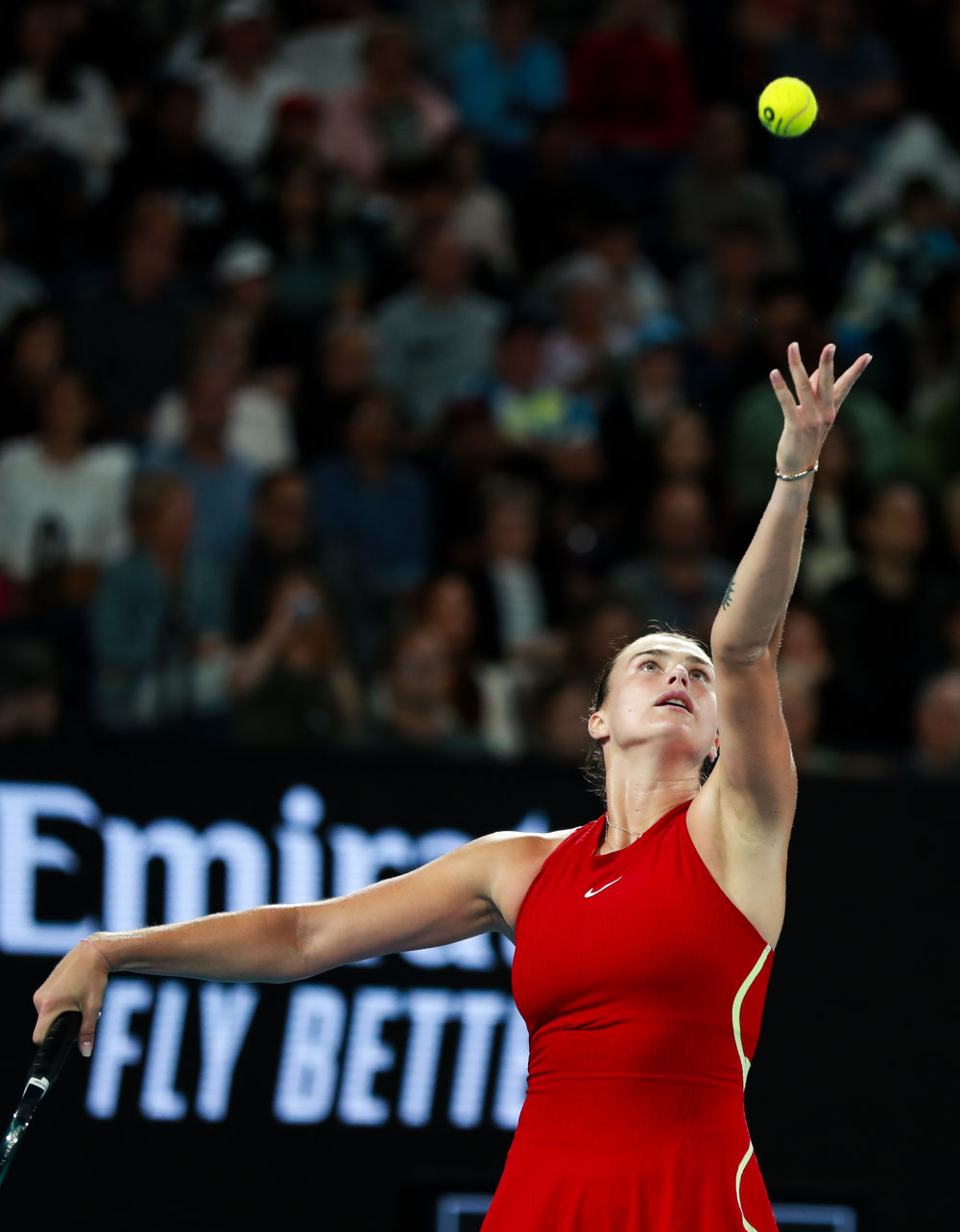 1月25日,薩巴倫卡在比賽中發(fā)球。新華社記者 馬平 攝