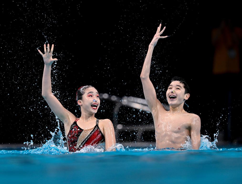 意大利隊、哈薩克斯坦隊和西班牙隊分獲混合自由自選項目前三名。中國隊顧嘉虞/郭牧兮位列第四?!敖裉彀l(fā)揮出了訓(xùn)練水平,我覺得自己需要增強力量,跟其他男選手還有差距,要繼續(xù)努力?!惫临庹f。