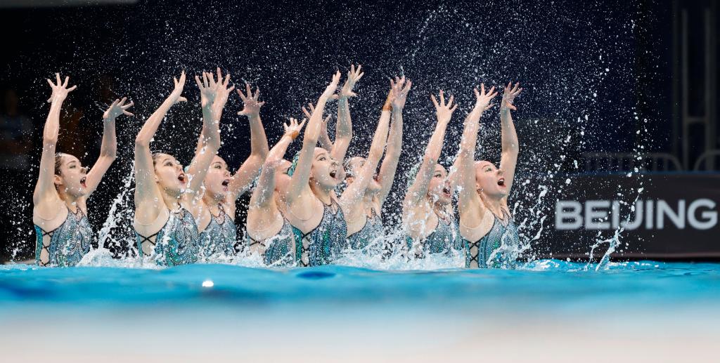 4月6日,在2024年花樣游泳世界杯(北京站)集體自由自選比賽中,中國(guó)隊(duì)以343.3479分的成績(jī)獲得冠軍。新華社記者 王麗莉 攝