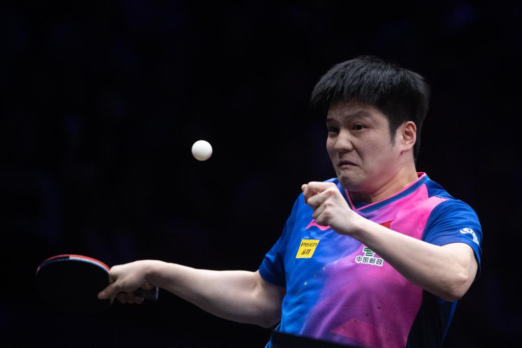 6月2日,樊振東在比賽中回球。新華社記者 唐奕 攝
