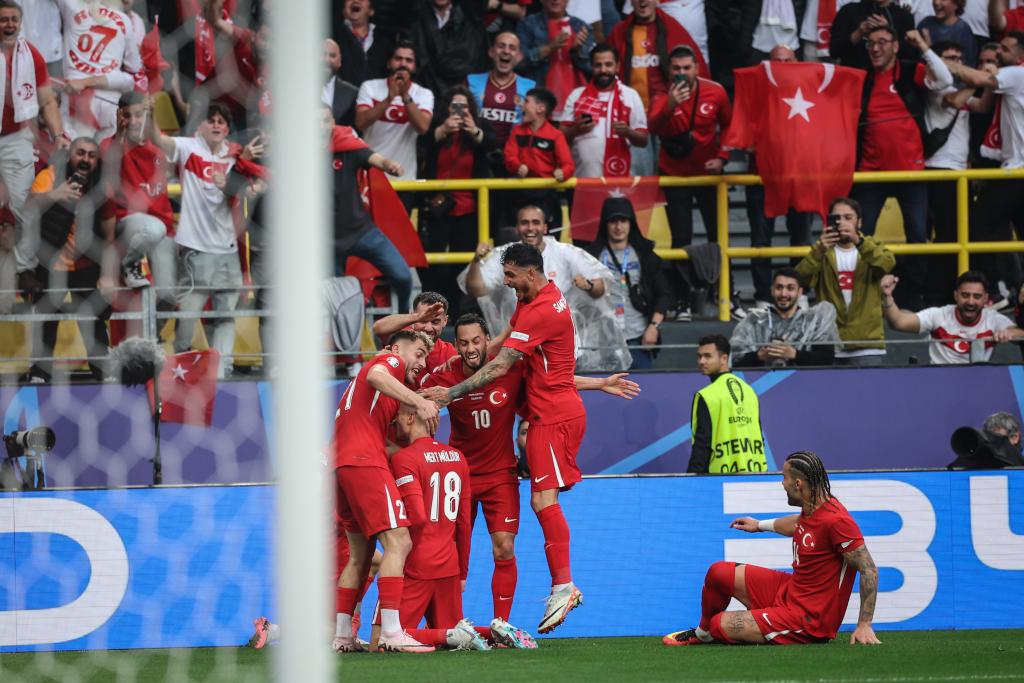 6月18日,土耳其隊球員梅爾特·穆爾杜爾(18號)進(jìn)球后與隊友慶祝。新華社記者 潘昱龍 攝