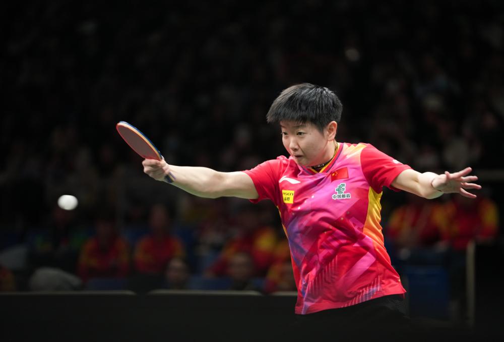 12月3日,中國隊選手孫穎莎在女單比賽中。新華社記者 江宏景 攝
