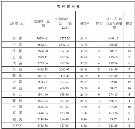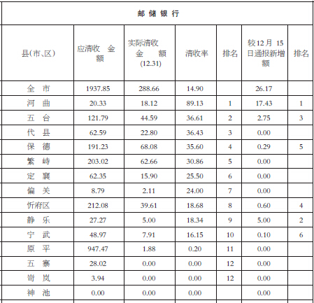 忻州集中清收農(nóng)村信用社郵儲銀行