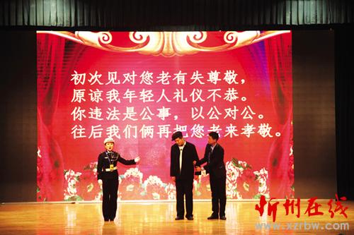 1月27日至29日,偏關(guān)縣公安局交警大隊(duì)交通安全文藝宣傳隊(duì)在隊(duì)長們的帶領(lǐng)下,先后走進(jìn)市實(shí)驗(yàn)中學(xué)、市客運(yùn)中心、國家電網(wǎng)忻州供電分公司進(jìn)行了三場演出,用自編自導(dǎo)自演、群眾喜聞樂見的“漫翰調(diào)”、“二人臺(tái)”、北路梆子、民歌等一系列極具地域文化特色的地方小戲、說唱歌舞等曲藝形式進(jìn)行宣傳演出,贏得滿堂喝彩,場場掌聲雷動(dòng)。作為春節(jié)回家路上的一道文化盛宴,這次春節(jié)前的平安出行警示教育“送安全下鄉(xiāng)”巡演是我市公安交警精心策劃、編排的春運(yùn)交通安全宣傳行動(dòng)之一。28日,市客運(yùn)中心人頭攢動(dòng),熙熙攘攘,大廳外懸掛的橫幅標(biāo)語“守護(hù)您的平安出行,保障道路安全暢通是每一位交警的神圣職責(zé)!”格外醒目。候車大廳里,暖意融融,市公安局交警支隊(duì)組織的春運(yùn)交通安全文藝演出正在進(jìn)行,交警版的民間小調(diào)《拜大年》、小品《警鐘聲聲》、雙簧《二愣子》等節(jié)目令人賞心悅目、捧腹不止。在歡笑之余,提醒和教育廣大群眾自覺抵制不文明、不安全交通行為,觀看演出的旅客和客車司機(jī)紛紛感慨,這樣的宣傳教育生動(dòng)形象,人人愛看且耐人尋味,警示作用很大。