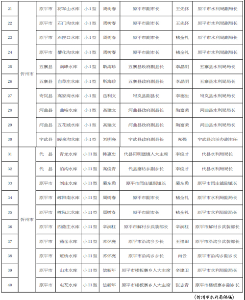 2016 年忻州市小型水庫大壩安全責任人