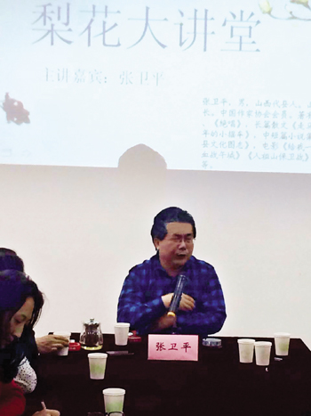農(nóng)家出身的張衛(wèi)平來自代縣基層,現(xiàn)為中國作家協(xié)會會員,著有長篇小說《給我一支槍》、《絕唱》,長篇散文《走馬雁門》,短篇小說集《童年的小搖車》、中短篇小說集《野魂》,電影《給我一支槍》、《浴血雁門關(guān)》、《血戰(zhàn)午城》、《人祖山保衛(wèi)戰(zhàn)》,電視連續(xù)劇《大宗師》。在這次“梨花大講堂”文學講座上,張衛(wèi)平從文學的載體切入,縱論了從口頭文學到紙質(zhì)文學、影視文學、網(wǎng)絡(luò)文學的演變發(fā)展;結(jié)合自己的創(chuàng)作感悟,站在技術(shù)層面,從語言、人物、情感、結(jié)構(gòu)、思想五個高度闡述了對文學的判斷;站在藝術(shù)的境界,分情感、歷史、精神三大板塊,講解了作品提升的高度。該市偵探小說作家狄保壽感到張衛(wèi)平的講解切中了文學創(chuàng)作的要害,讓大家明白了如何提高文學創(chuàng)作水平的道理。青年文學愛好者李詠梅表示要按照張衛(wèi)平老師的講授,不斷努力,寫出更好的文學作品。該市文聯(lián)主席鄭建芳告訴記者:“梨花大講堂要形成常態(tài)化,為提升全市文學創(chuàng)作隊伍整體素質(zhì)發(fā)力。”(藺紅)